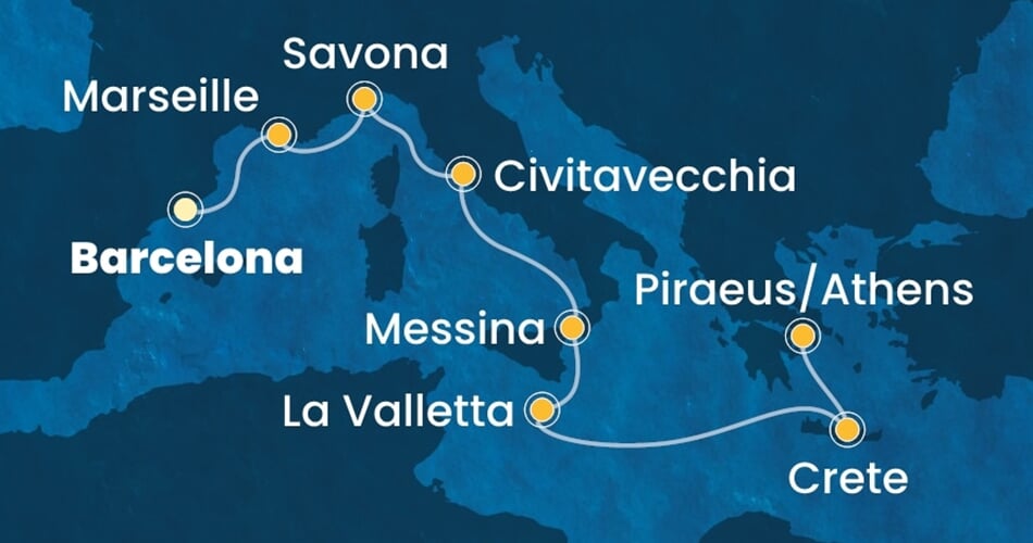 | 8. den | Heraklion (Řecko) | 09:00 | 19:00 |