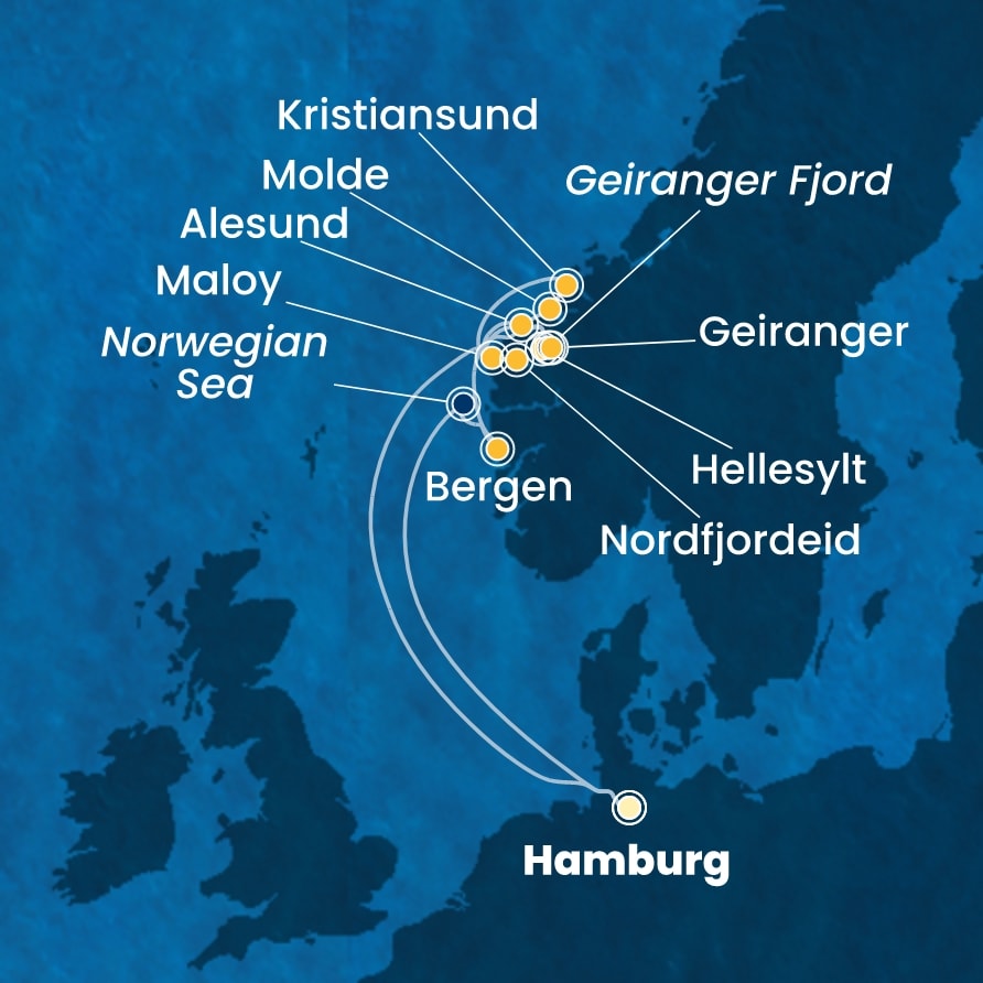 | 8. den | Hellesylt (Norsko) | 08:30 | 930 |
