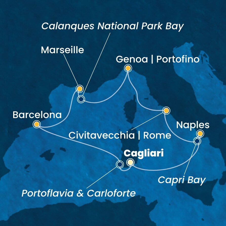 | 8. den | Cagliari (Itálie) | 07:00 | - |